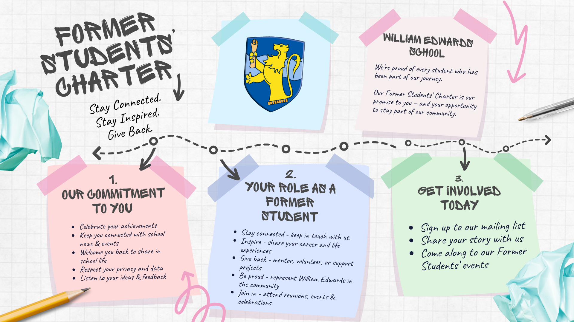 We would like to see William Edwards School supported by a thriving and engaged alumni community to help us improve the motivation, confidence and life chances of our pupils.